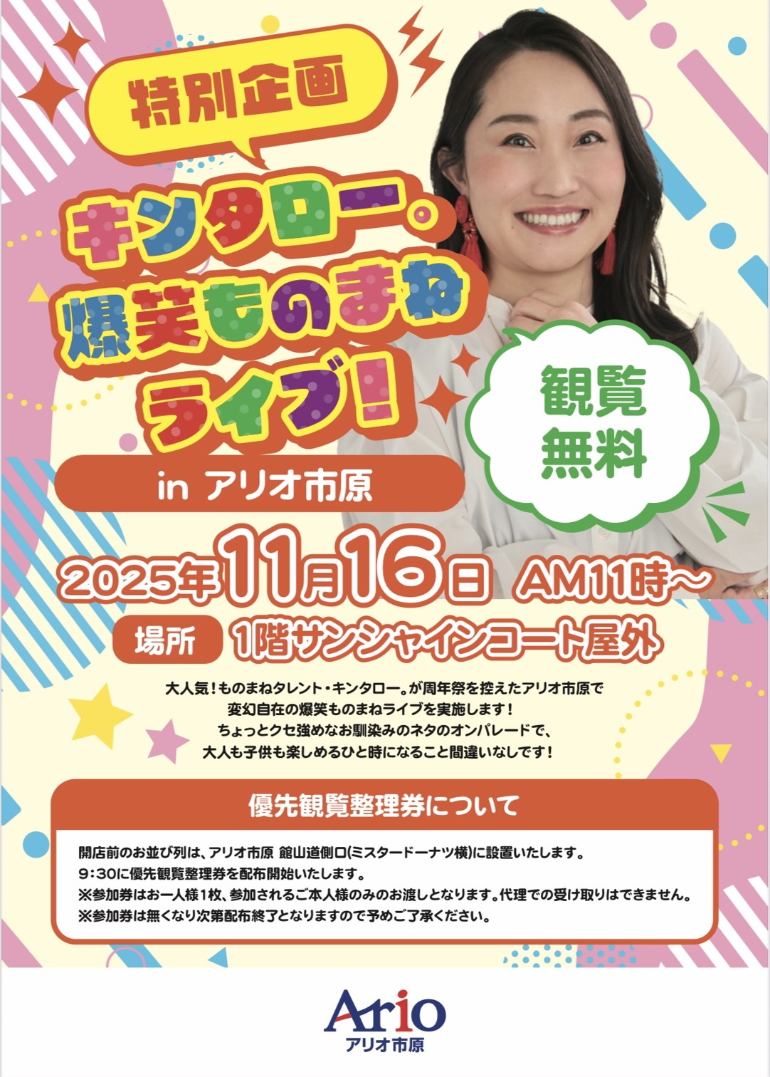 アリオ市原にてキンタロー。爆笑ものまねライブを開催しました!