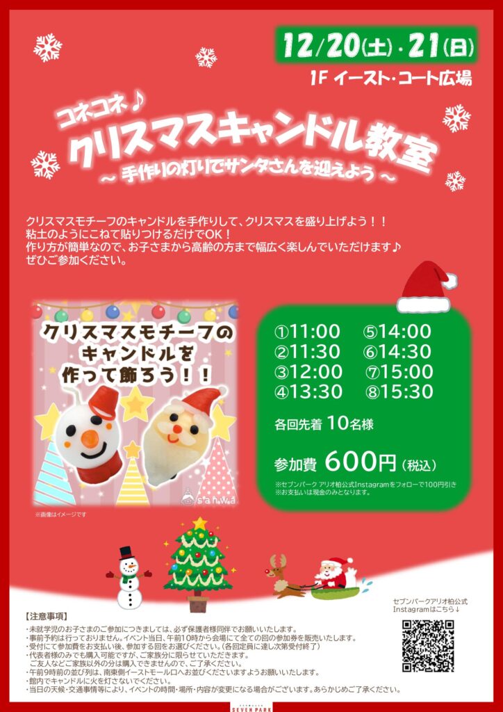 セブンパークアリオ柏にて「コネコネ♪クリスマスキャンドル教室」を開催いたしました!
